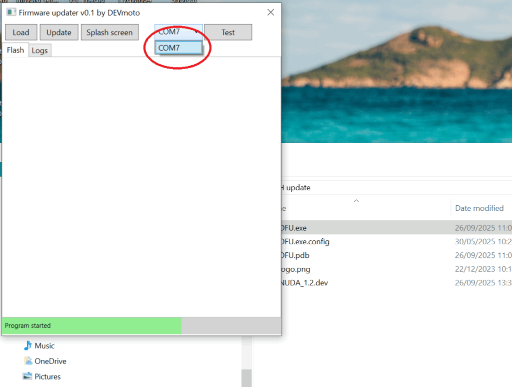 - Cliquer sur le bouton Load et sélectionner un fichier de mise à jour xxxx.dev